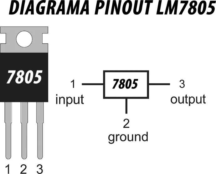 - Se presenta comúnmente en encapsulado TO-220, con tres terminales: Entrada (IN), Tierra (GND) y Salida (OUT). Es muy utilizado en fuentes de alimentación para circuitos lógicos de 5 V, microcontroladores y sensores.